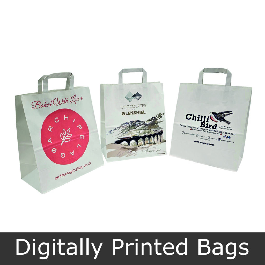 Digitally printed paper tape handle bags and SOS bags without handles are a new product for 2026! With a very fast delivery turnaround and a low budget, these bags are perfect for takeaways and farm shops, as well as promotions and giveaways – offering a branded colourful eye catching bag without the associated expense.