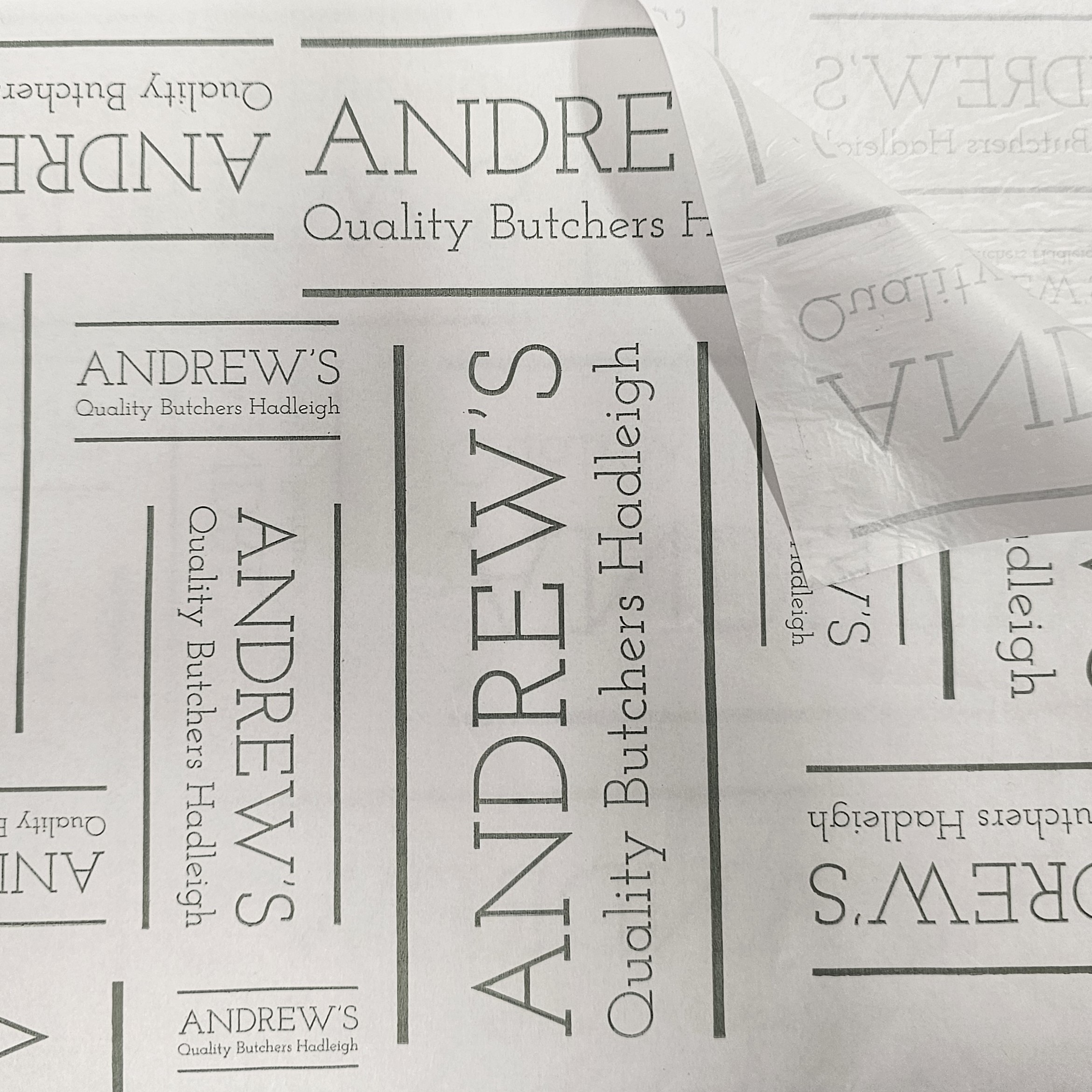Duplex paper is an incredibly good value food grade paper sheet, popular with butchers, delis and sandwich shops. The paper is a food grade white or brown kraft sheet which can be branded with your 1 or 2 colour design. It is finished with a food grade HDPE sheet glued to the backside. In use, the non printed side is used and once wrapped the presentation is stylish.