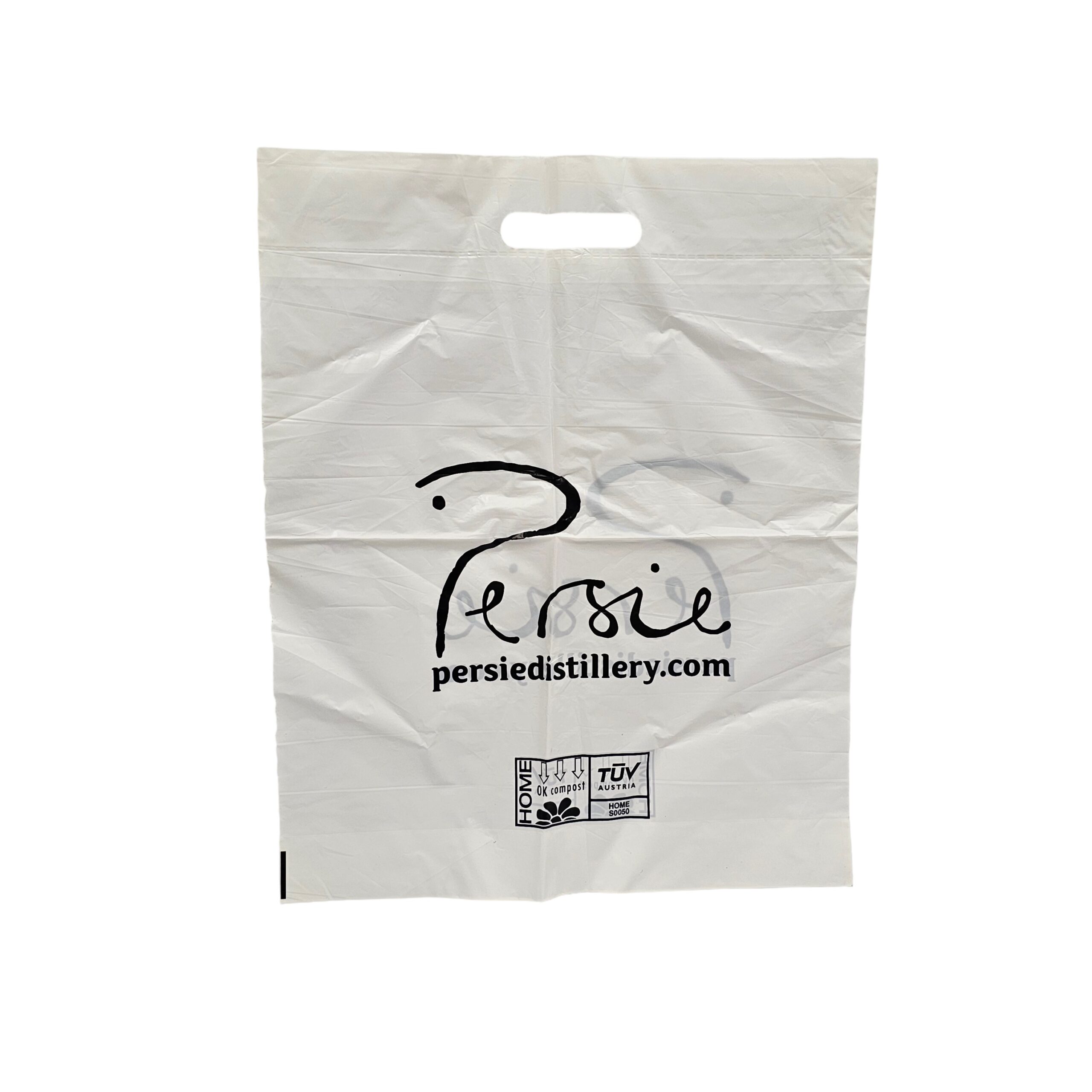 Potato Starch carrier bags have a gorgeous semi translucent frosted appearance. As they are made using potato starch and are 50 microns thick, they can be home composted without the need to go to industrial composting sites. Potato starch carrier bags are deceptively strong and can be branded with C pantone inks up to 3 colours on both sides of the bag. They are a British made carrier bag which adds to their environmental appeal. We can turn the top of the bag over to create a double thickness handle which reinforces and adds strength, making them a popular choice for distilleries, bookshops and environmentally conscious gift shops.