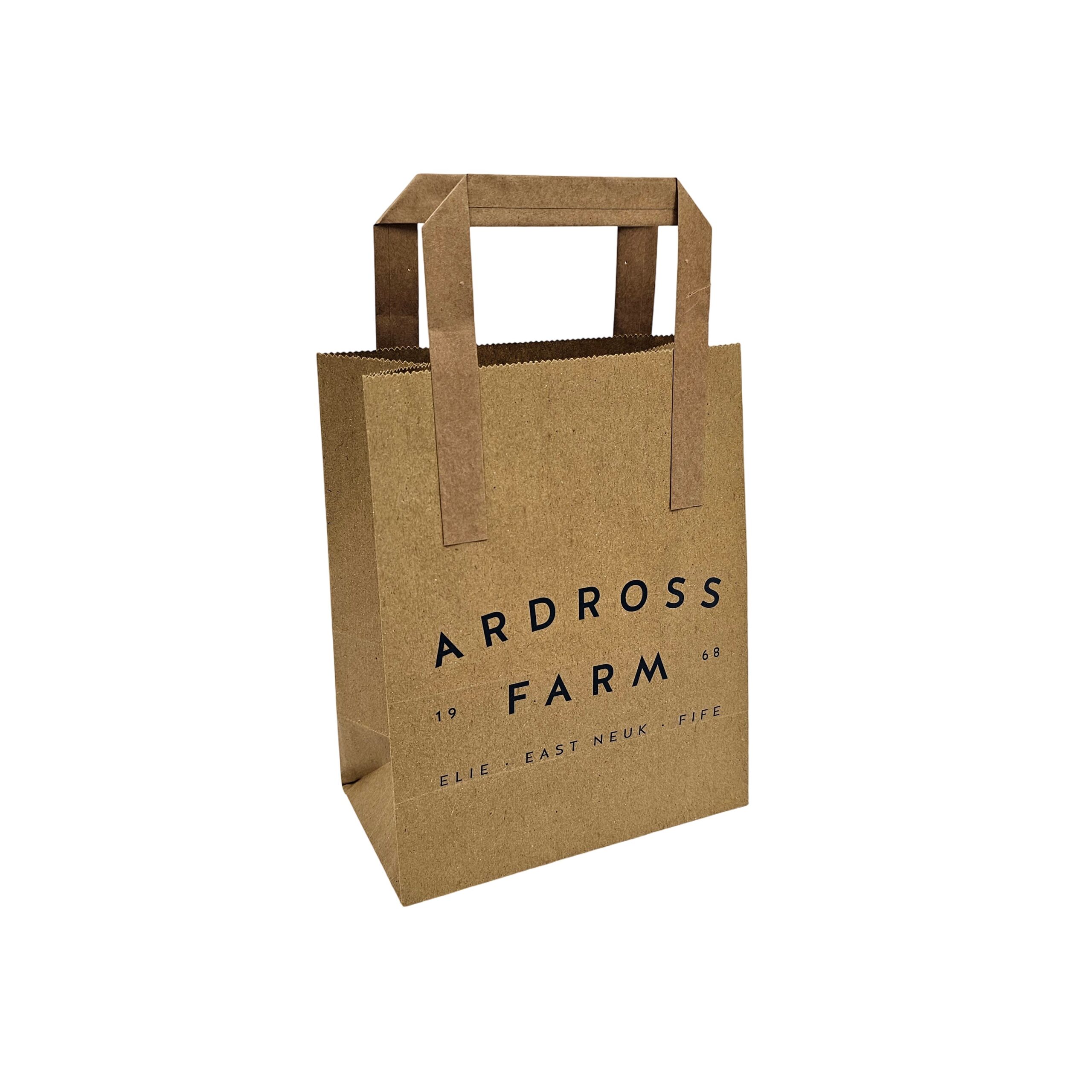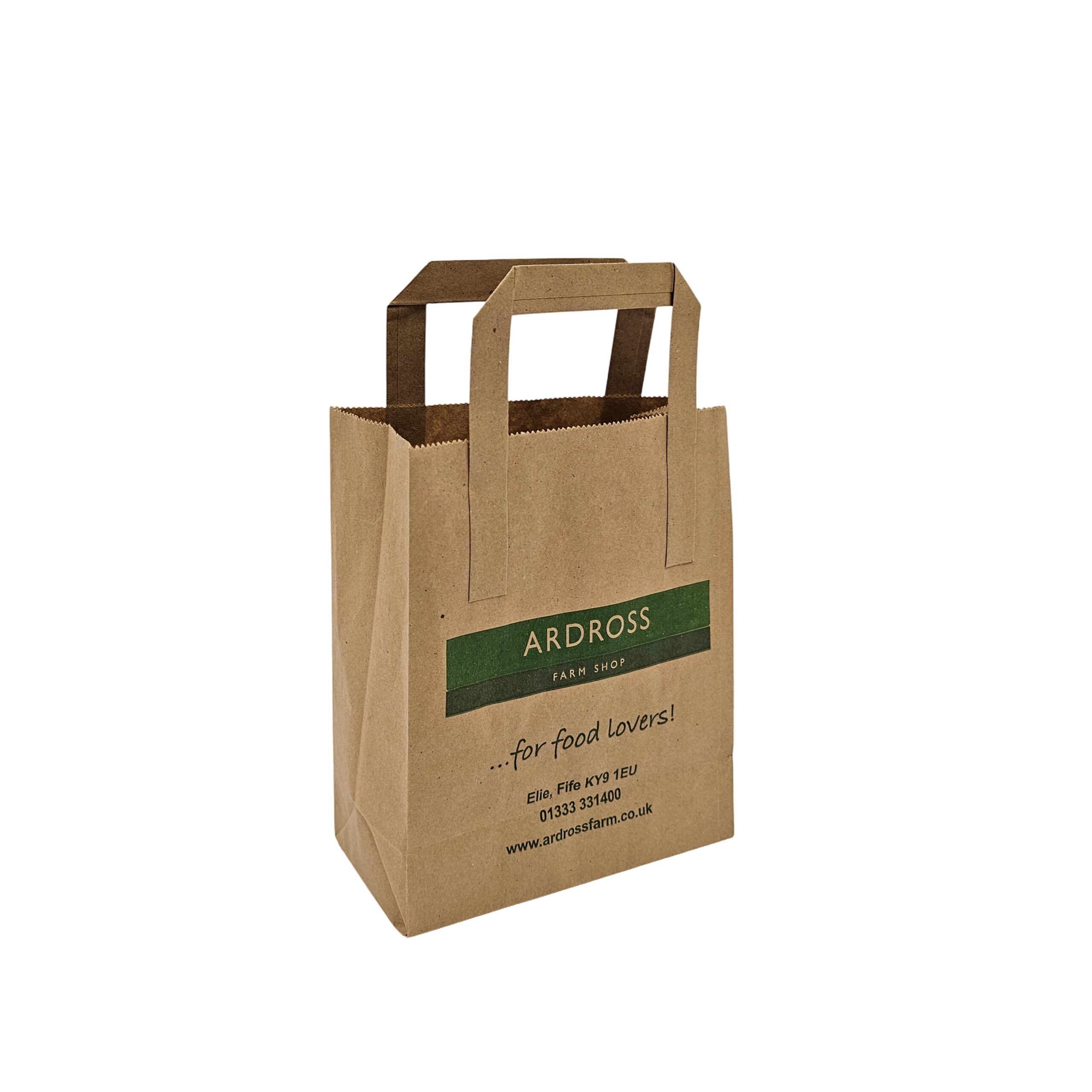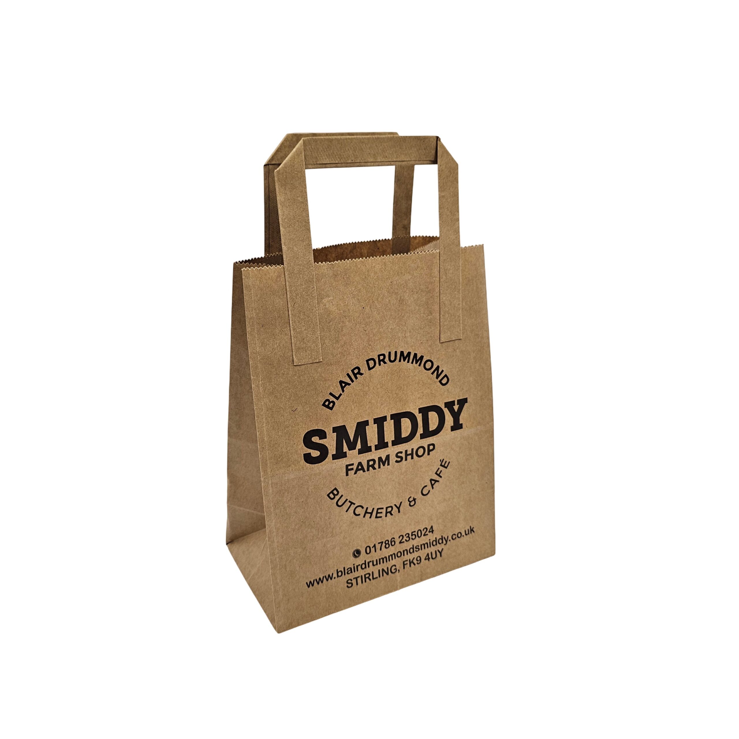 Paper tape handle bags are perfect for takeaways and farm shops, offering a low cost, versatile eye catching bag.