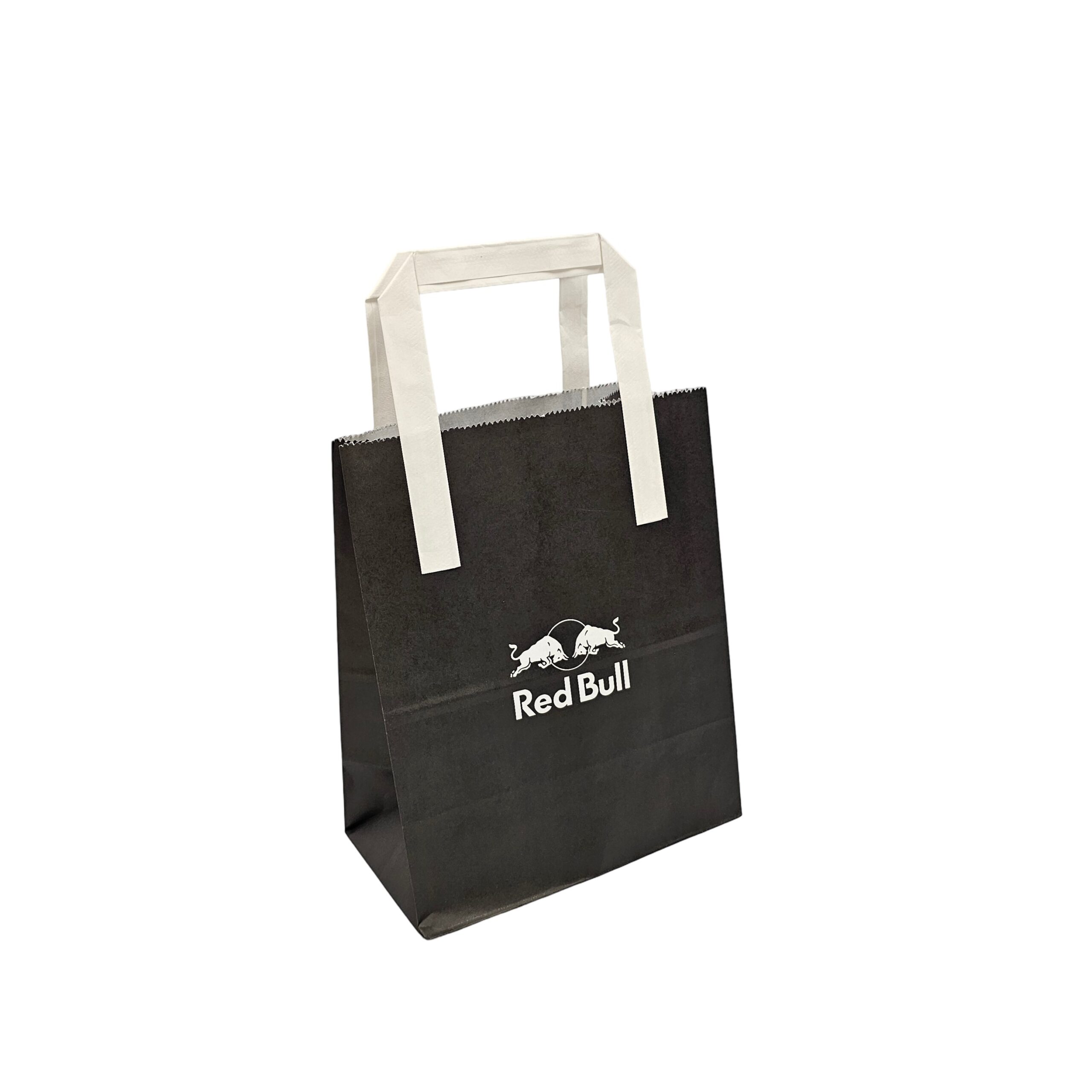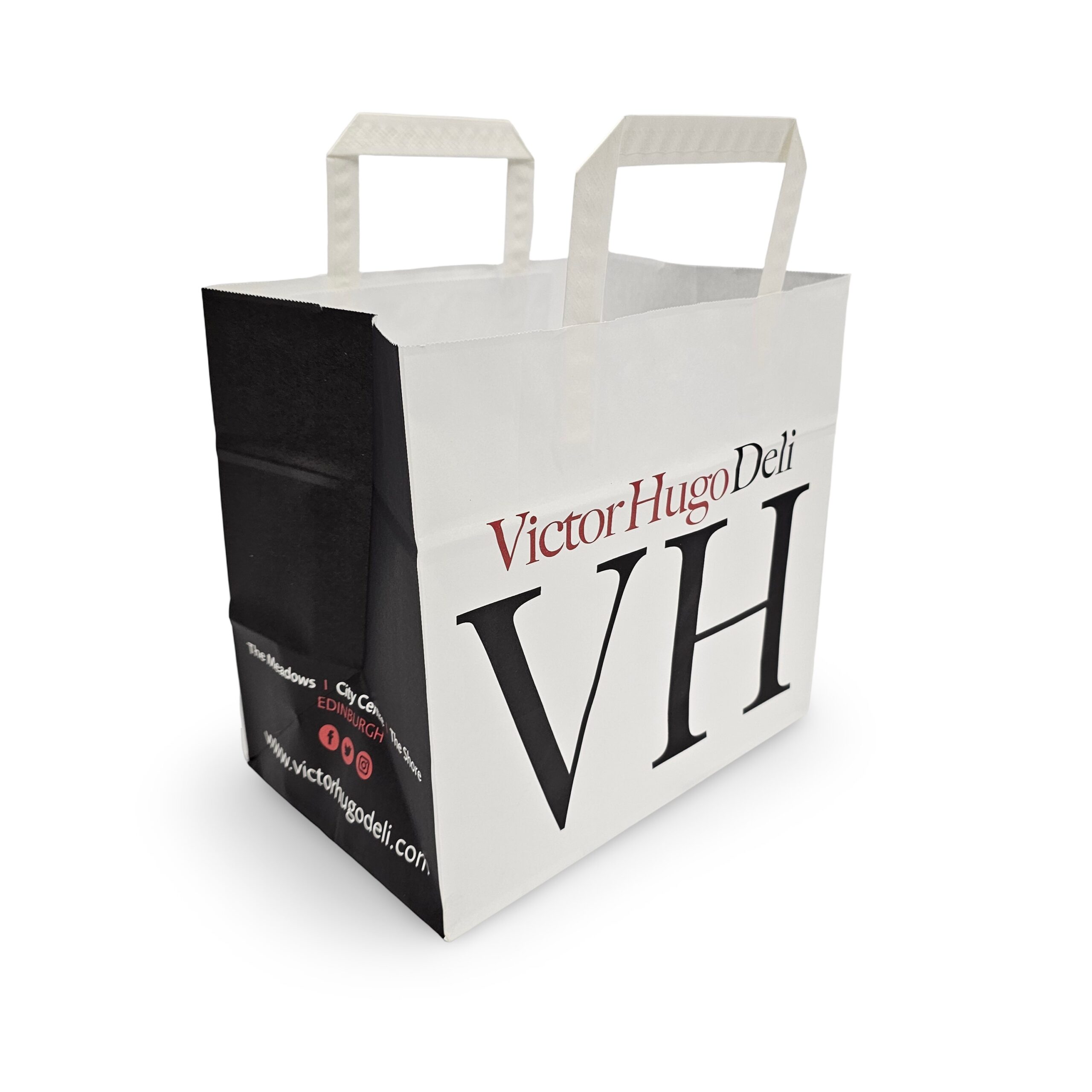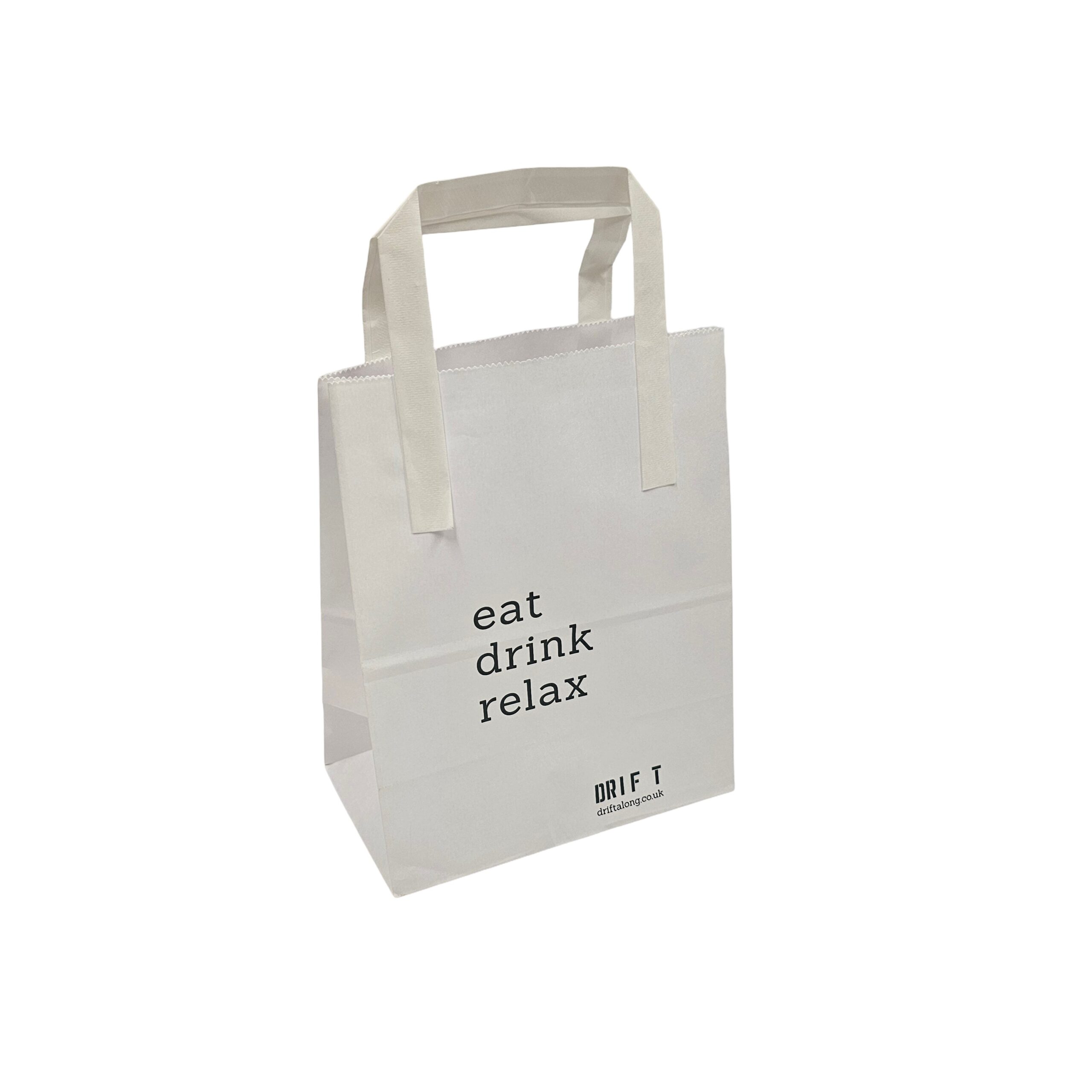 Paper tape handle bags are perfect for takeaways and farm shops, offering a low cost, versatile eye catching bag.