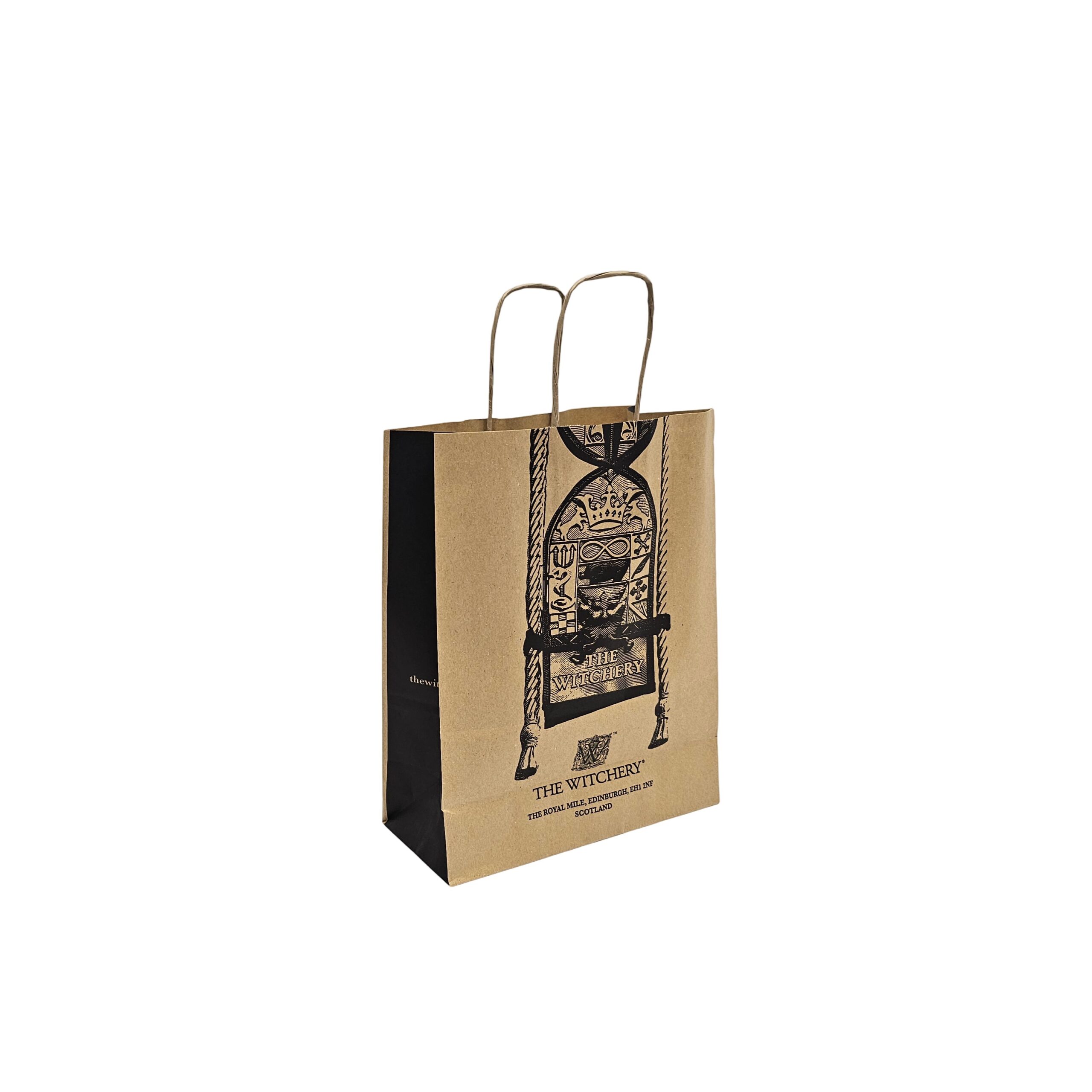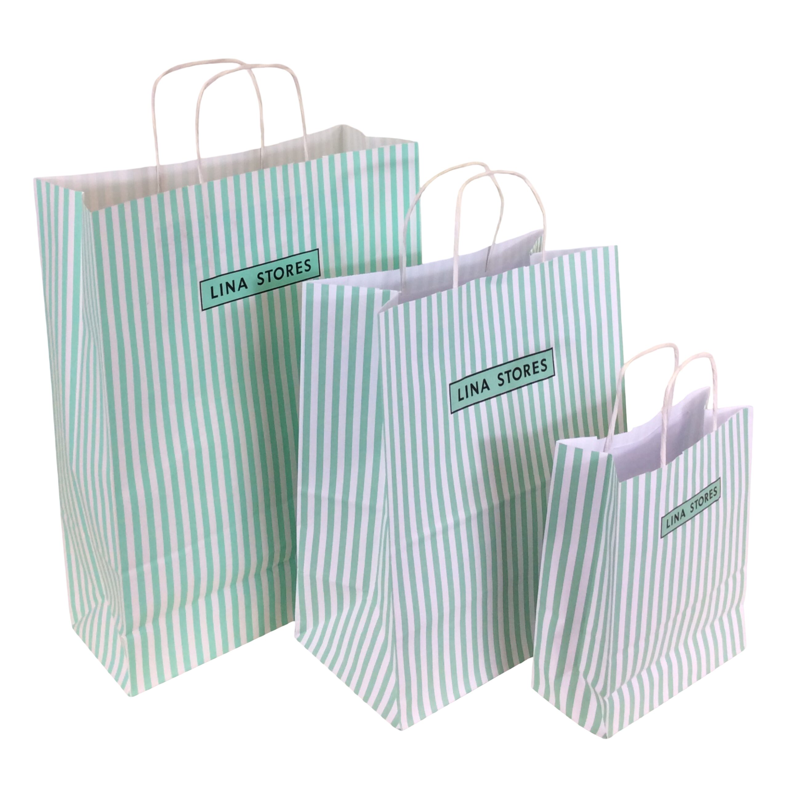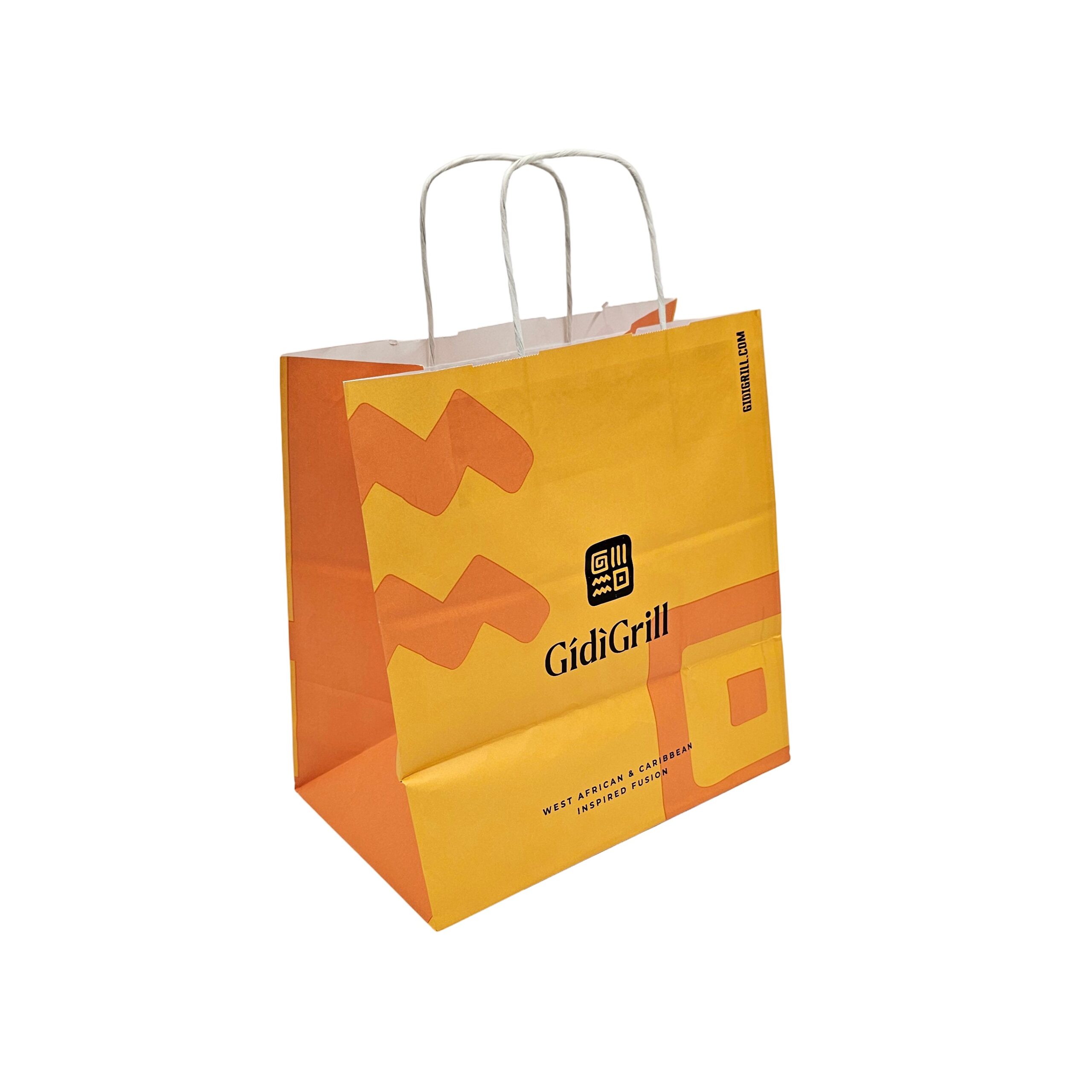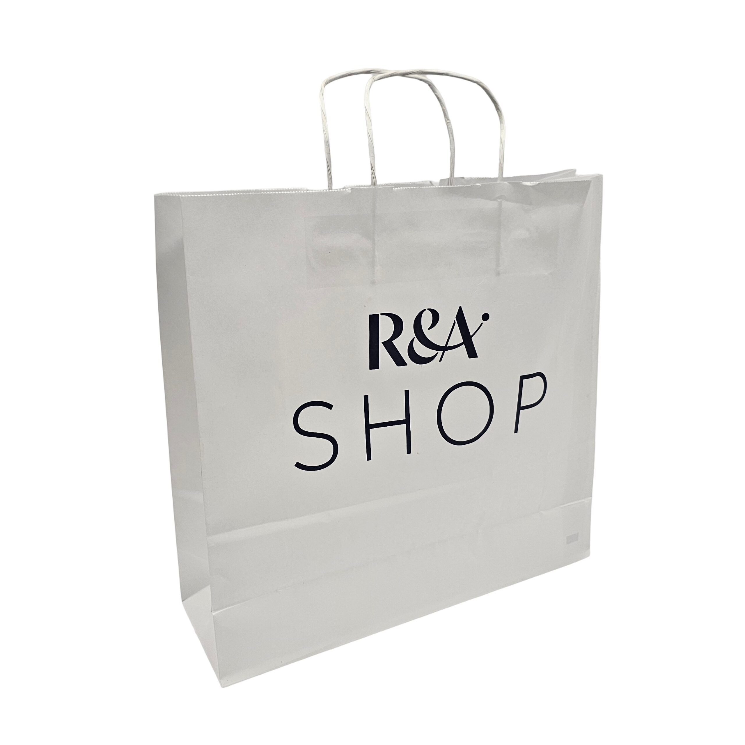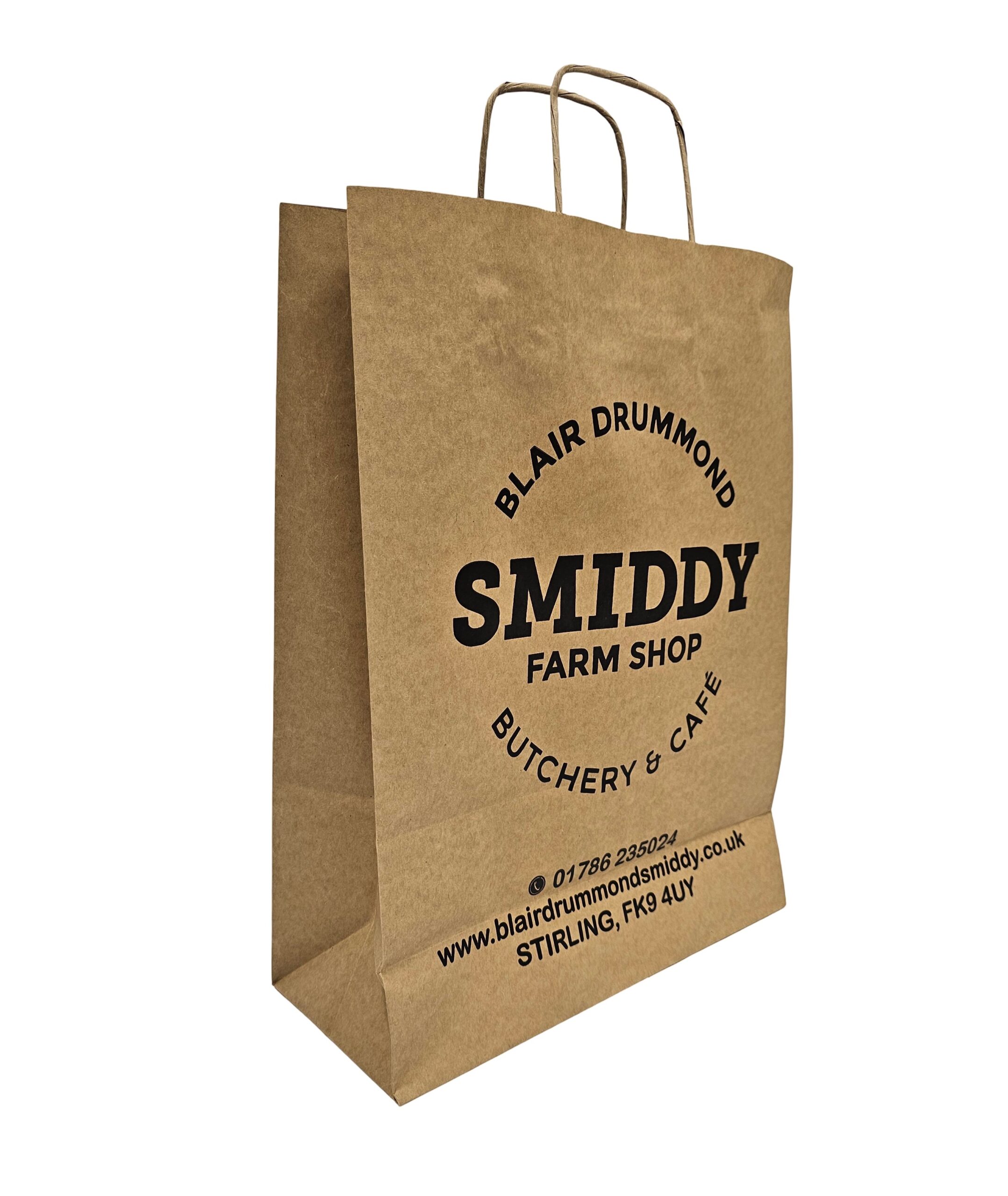 100gsm white or brown kraft paper bags with twisted paper handles.