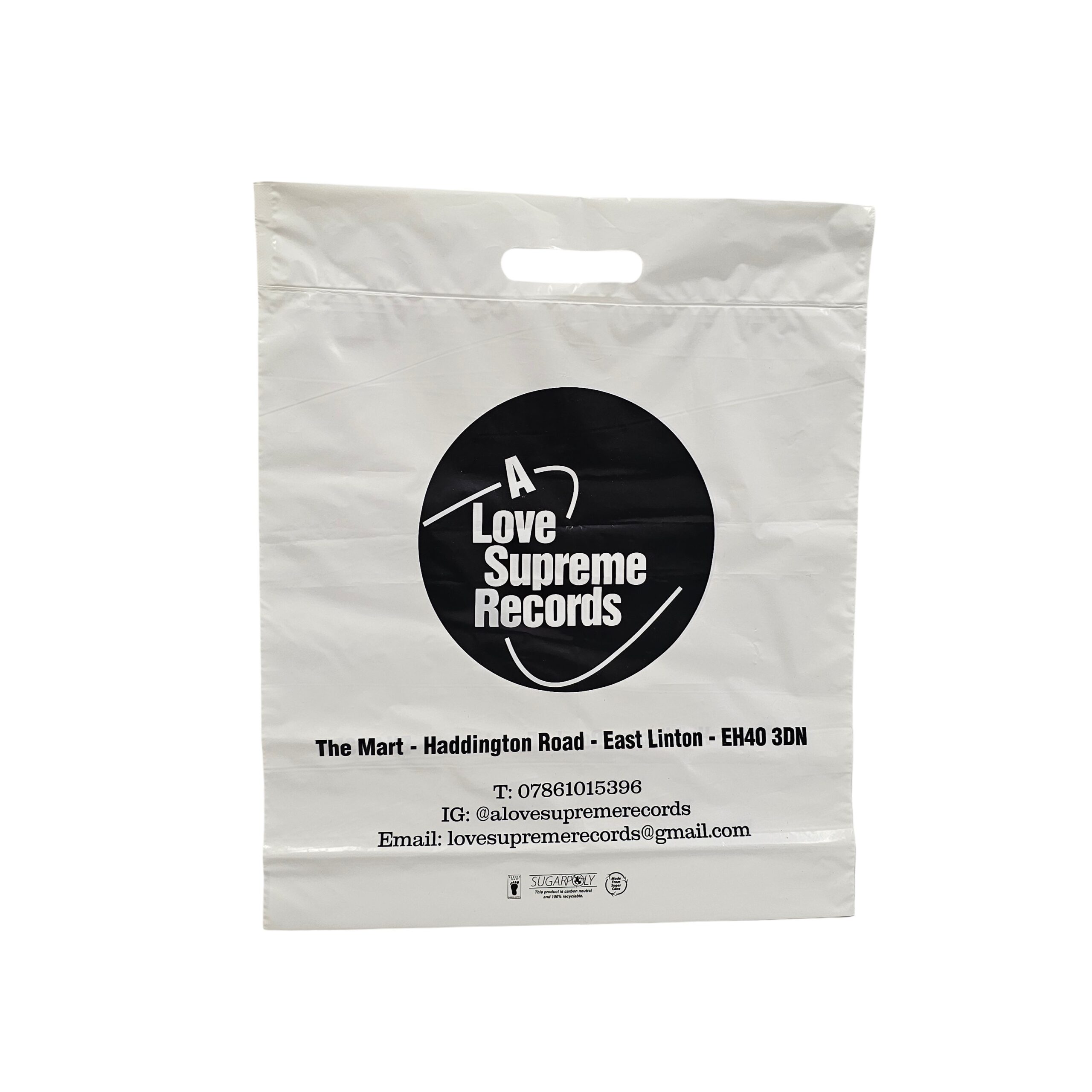 Sugar Cane Carrier Bags are an environmentally sound alternative to oil based polythene carriers. They are a sustainable raw material and are British made using water based inks. Sugar Cane film makes super strong durable bags that can be reused many times before being recycled along with other polythene and plastics.