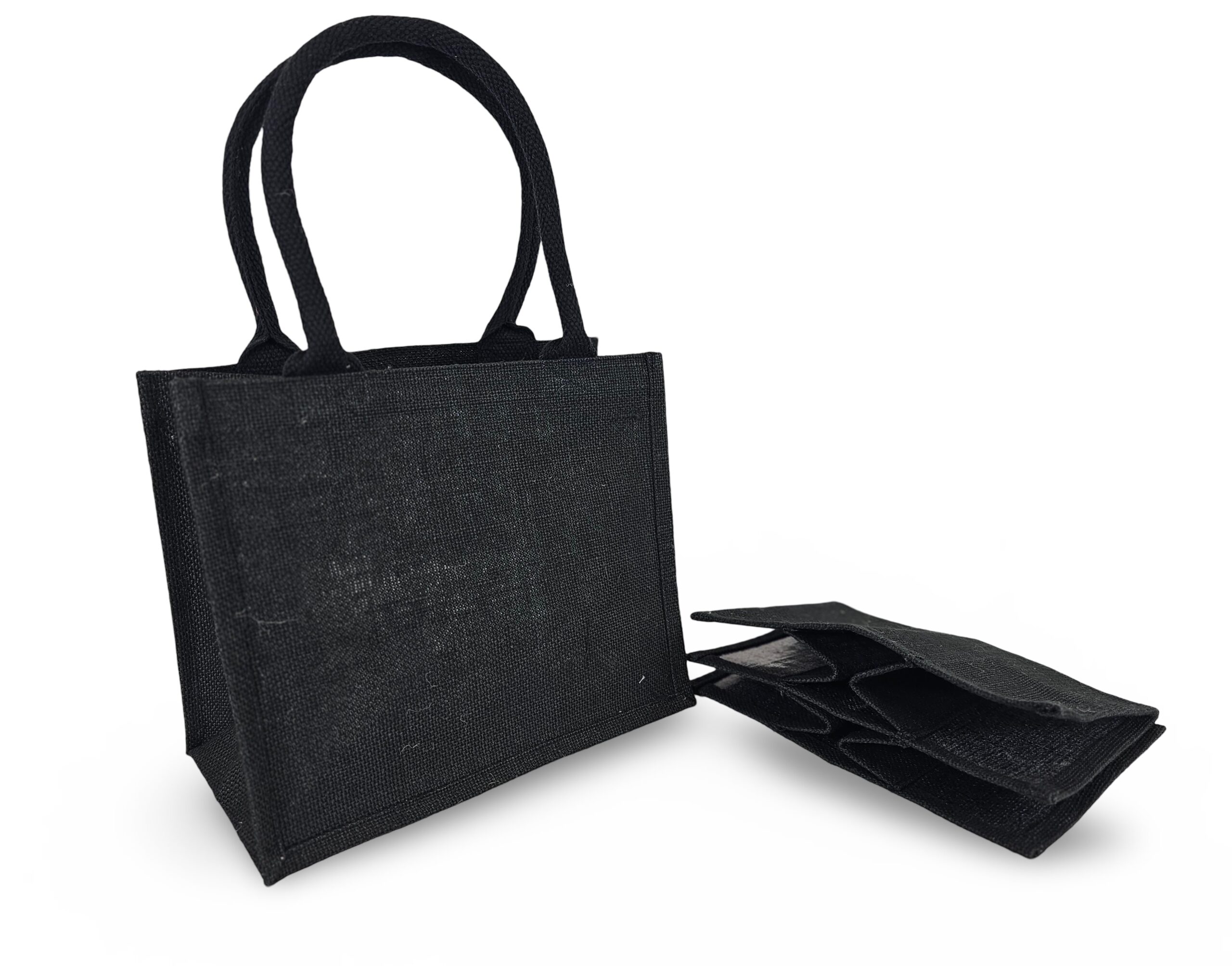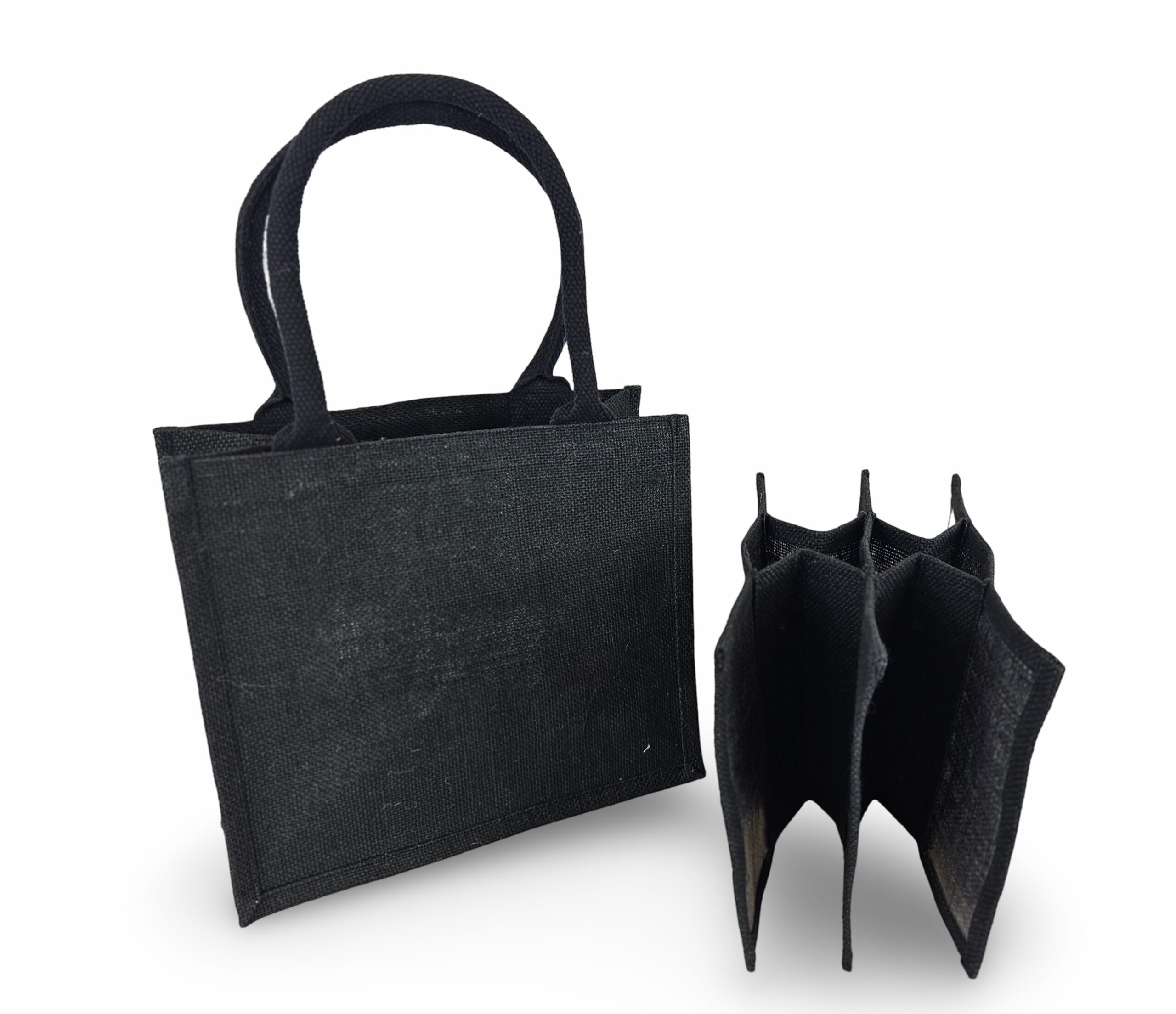 Black Jute Carrier Bag with removable 6 bottle dividers – Unprinted – Boxed 50s