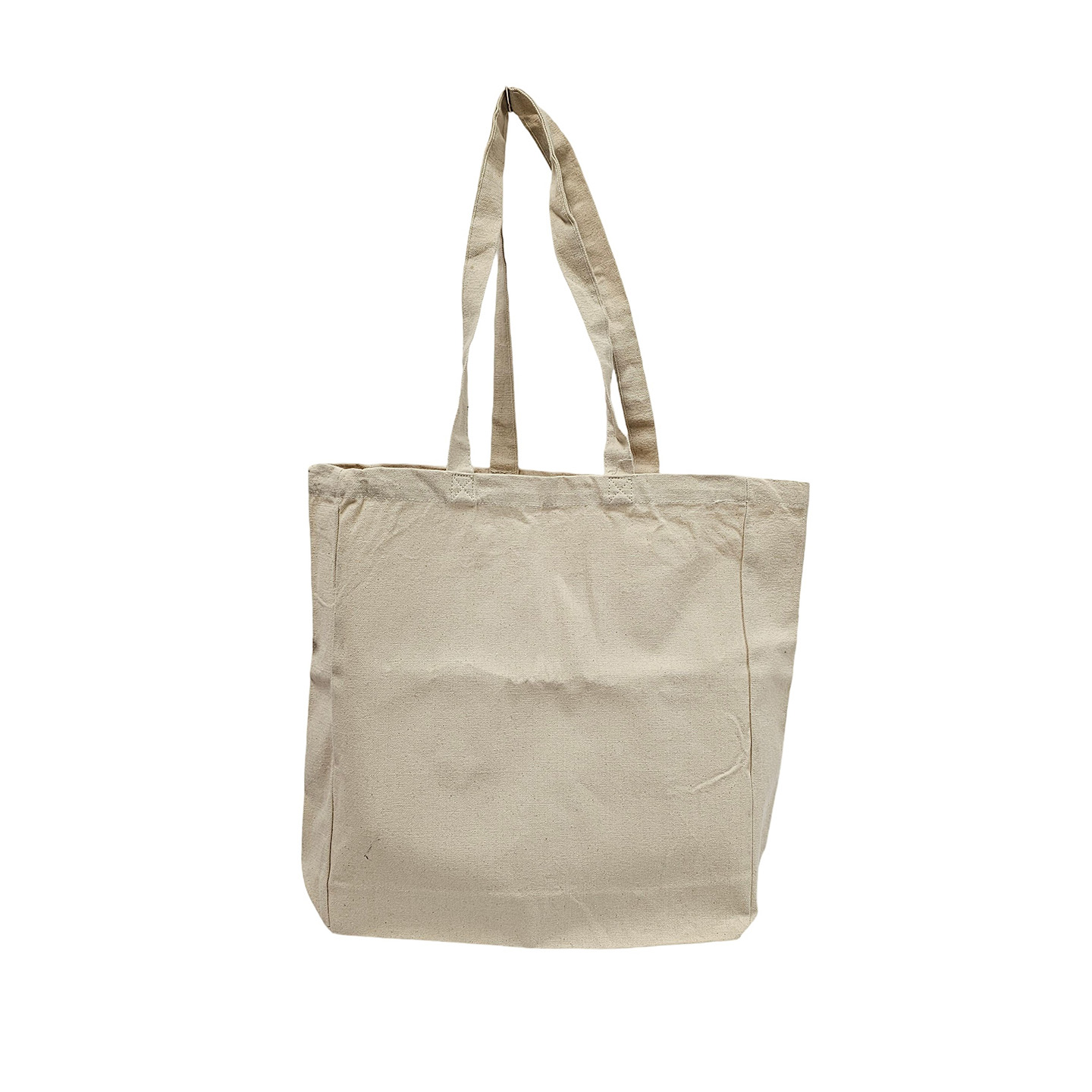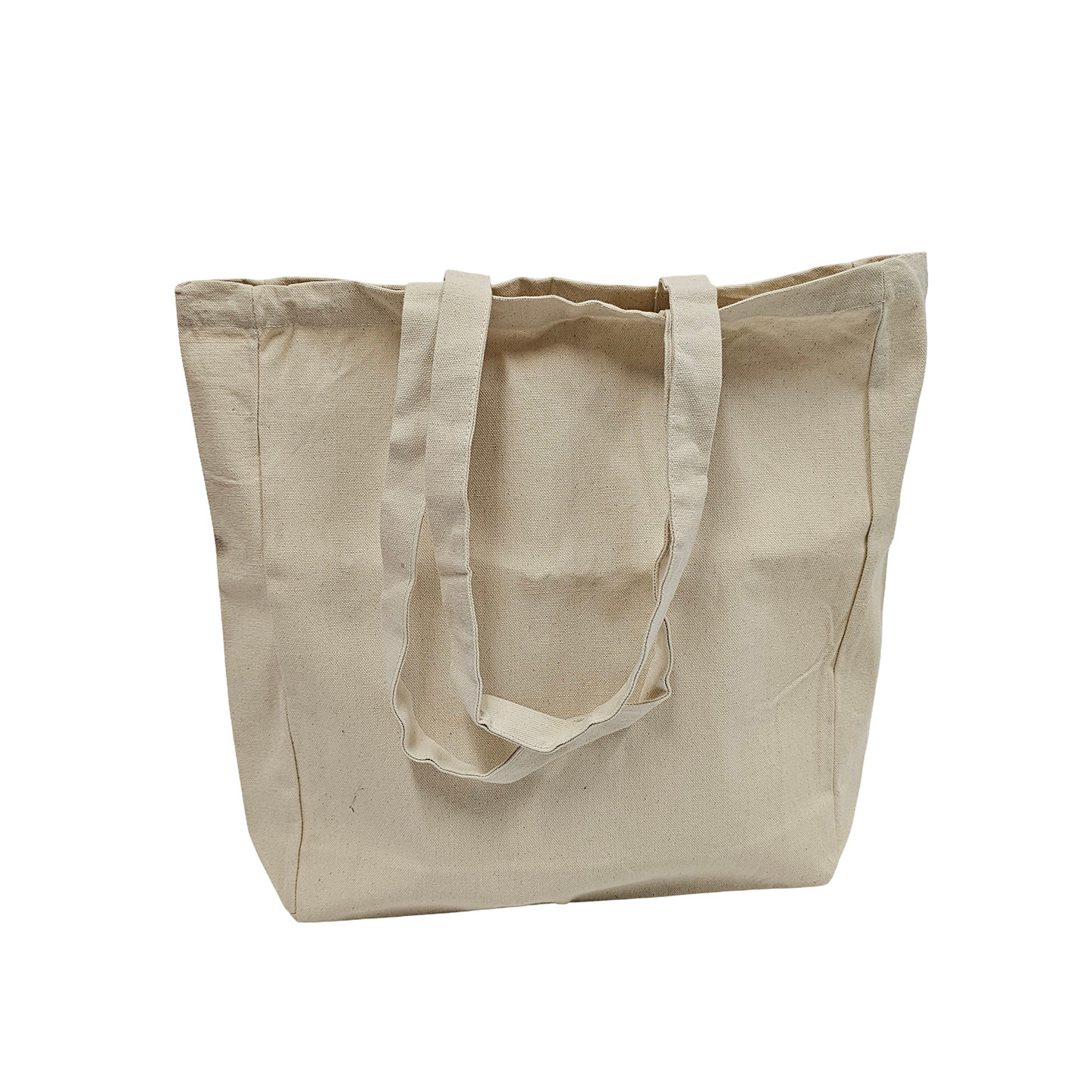 Our heavy duty unbleached natural canvas bags are a stunning durable quality and they come with self coloured cross stitched long loop handles and a full side gusset and base for extra capacity.