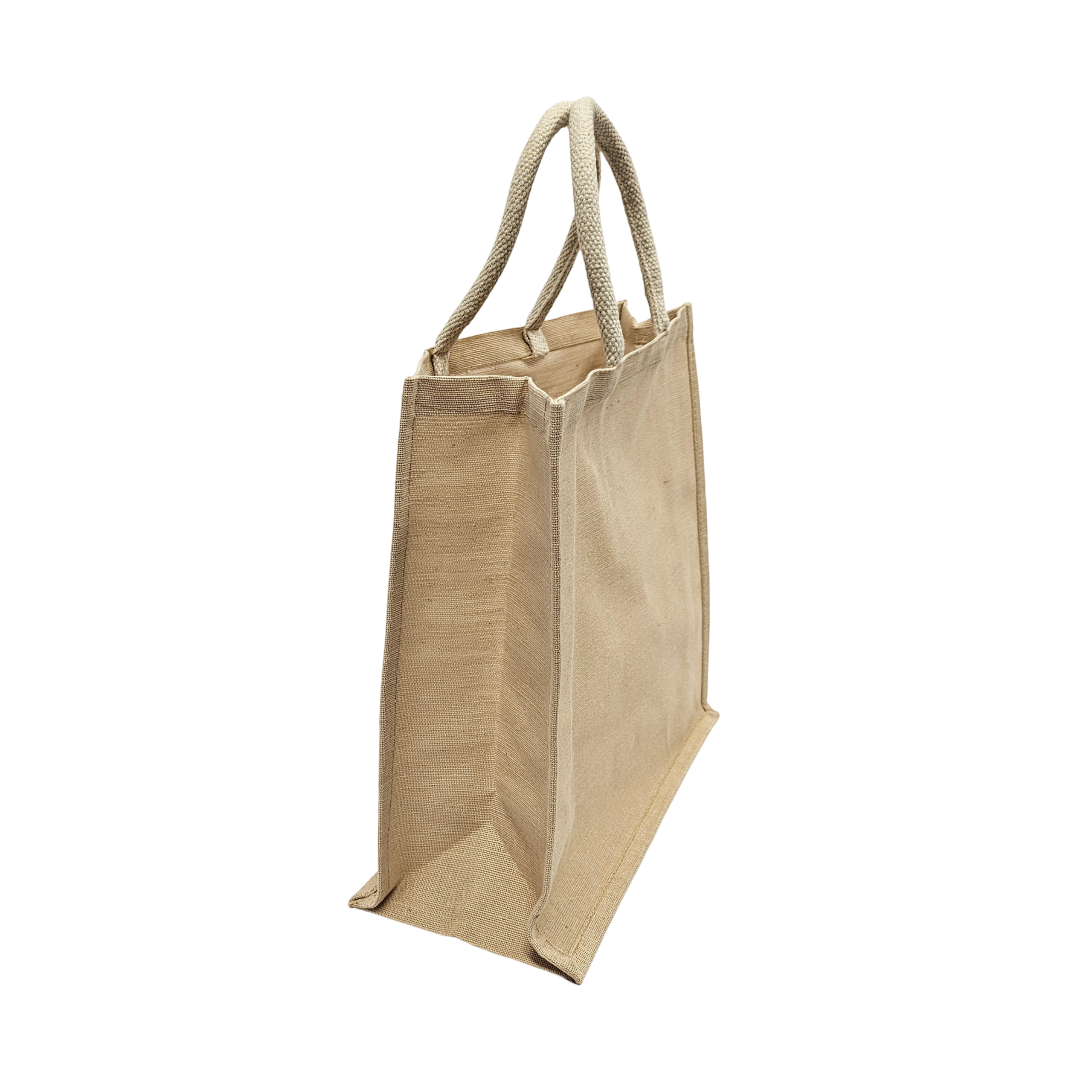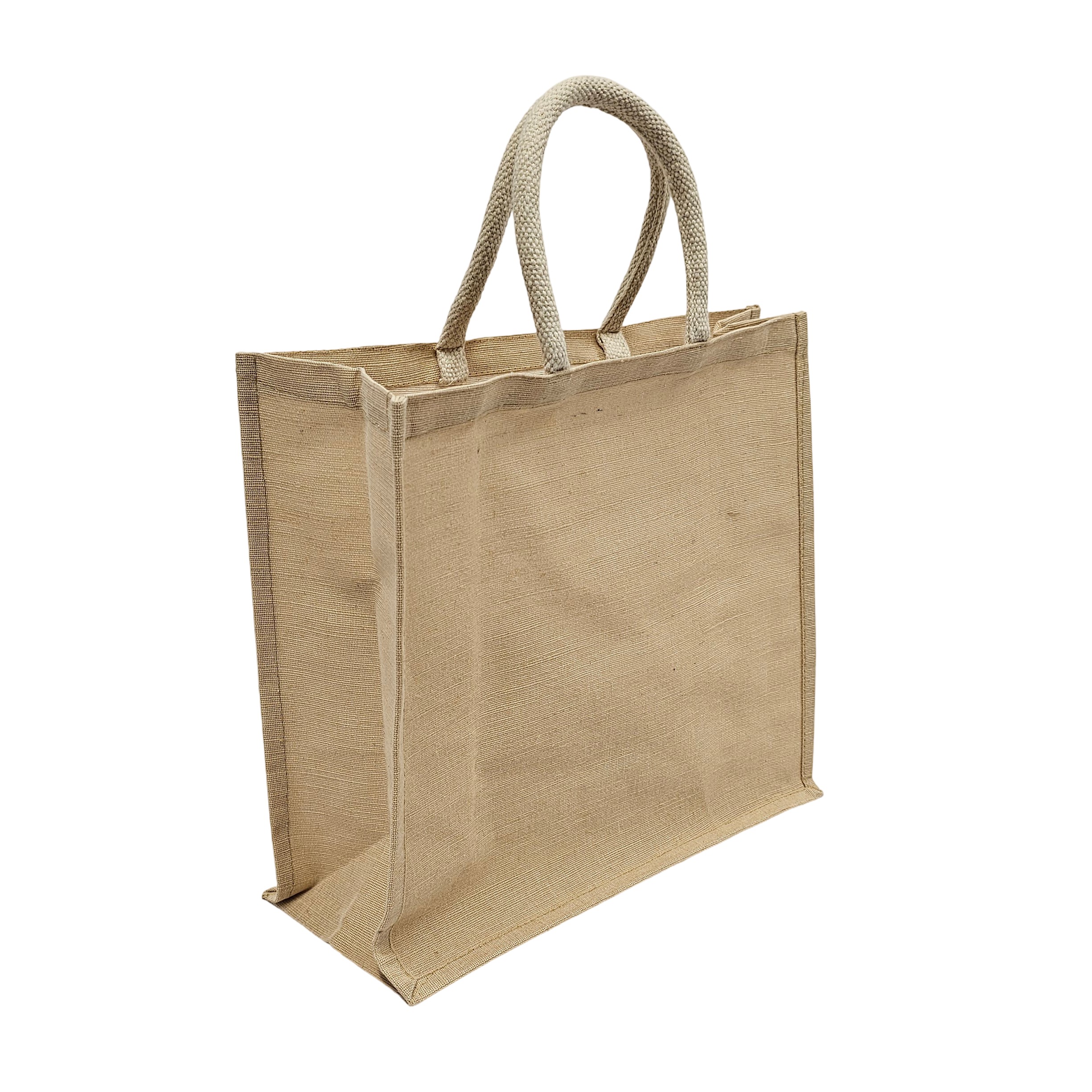 Very durable, internally laminated natural juco with soft cotton stuffed handles and suitable for all shopping needs.