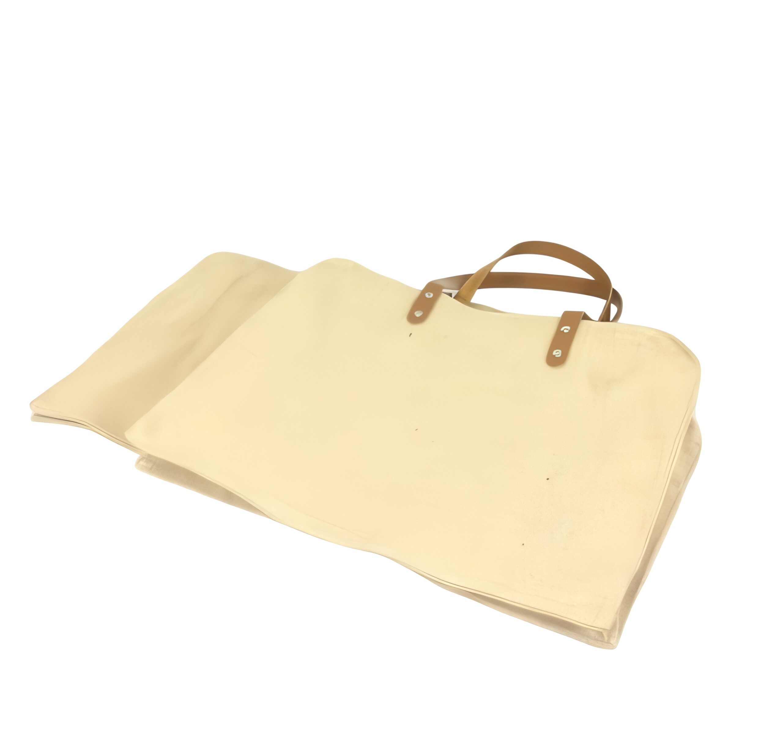 The real leather carry handles offer durability and comfort, while the zip-top closure adds security for shopping or transporting goods. This is a versatile and high-end alternative to standard jute or canvas bags.