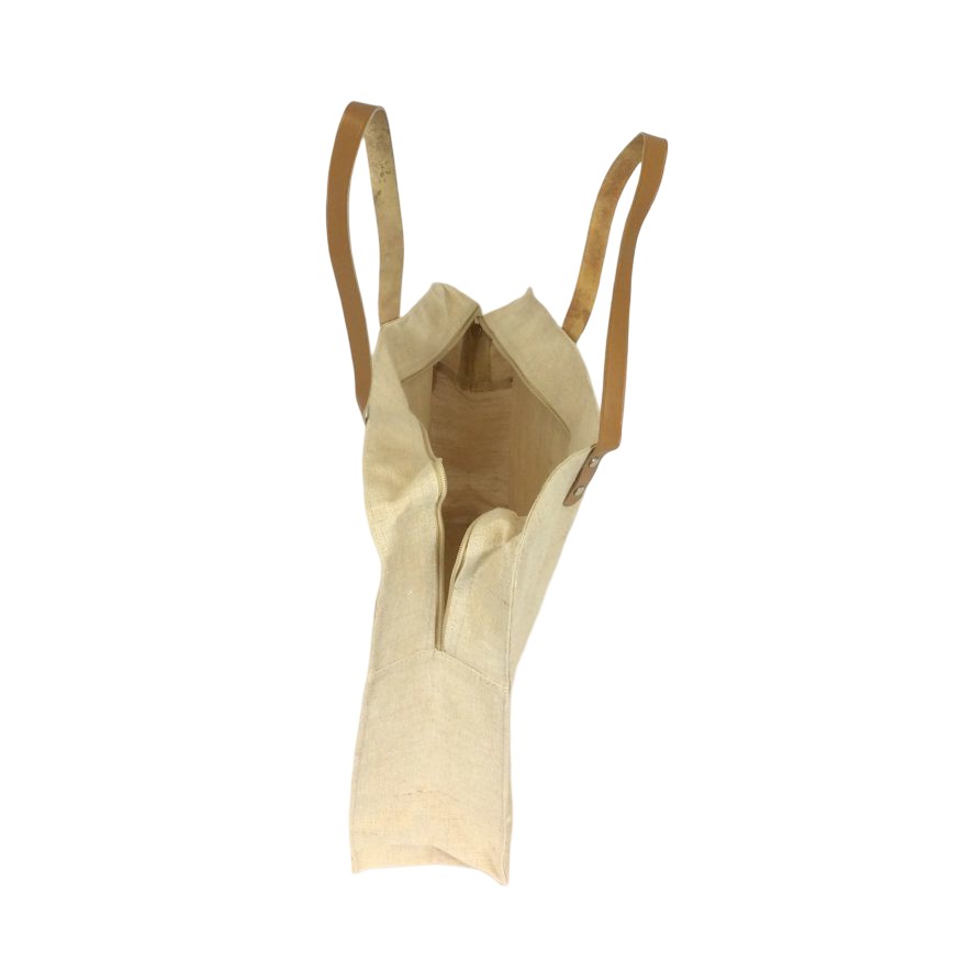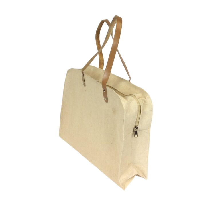 Premium Leather Handle Juco Carrier Bag with secure zip-top